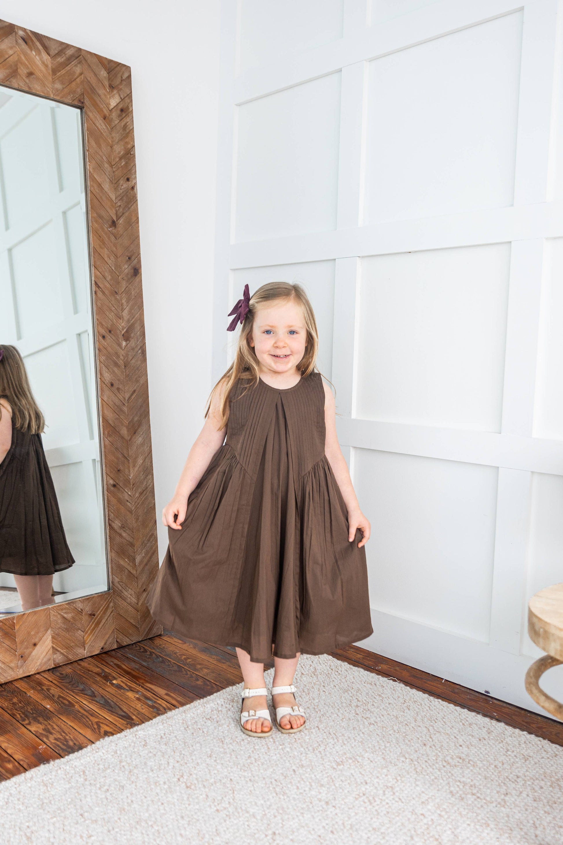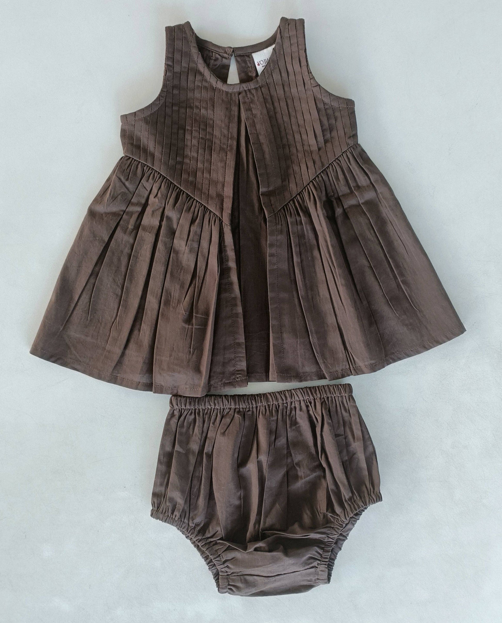 Brown Pintuck Gathered Dress: Infant : Baby : Toddler :Tween