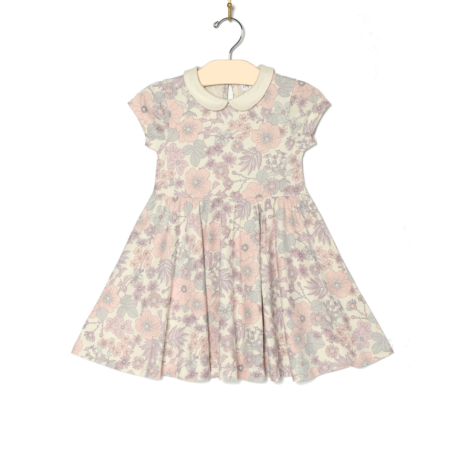 Our best selling twirl dress is back for Spring with a Peter-Pan collar, short sleeves, and our vintage floral print for the warmer weather! In our 100% combed cotton jersey, it's perfect for twirling through all her adventures.