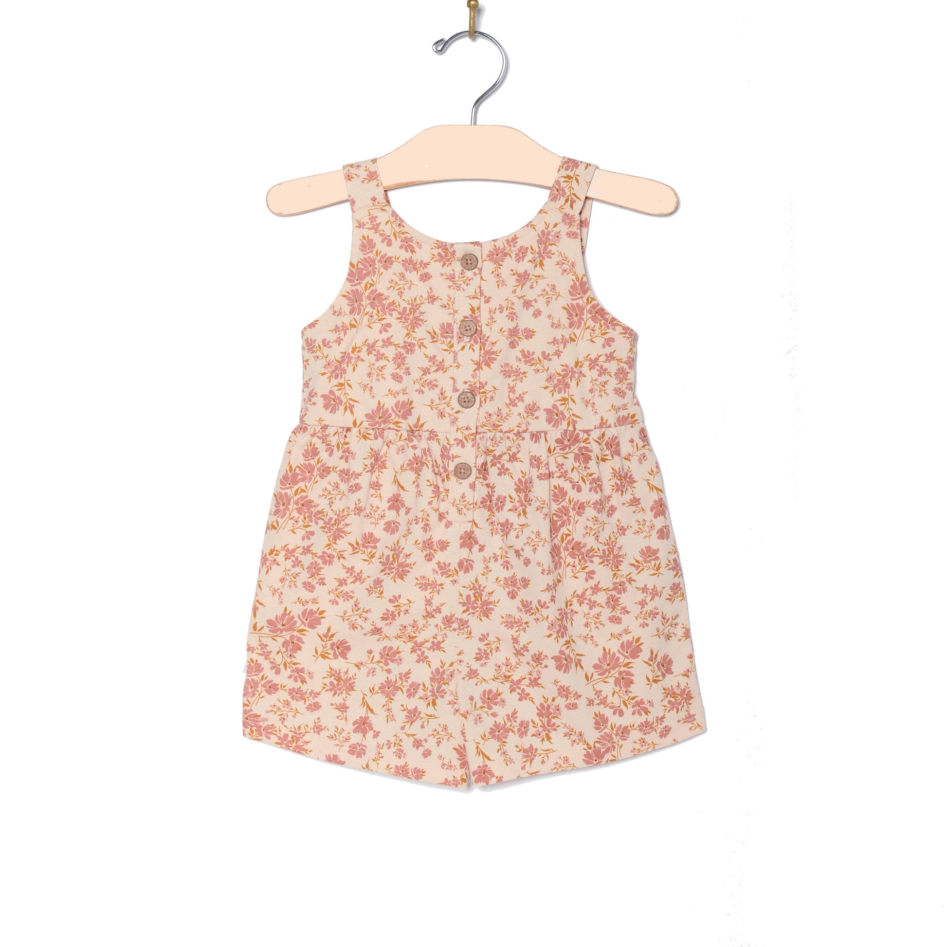 After much demand, our first big girl romper has arrived! In our 100% combed jersey cotton and an elasticized back, this style in the prettiest blush floral is perfect for busy adventures and lazy afternoons alike.